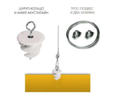 The kit is intended for fixing Akustiline Ampir Baffle sound absorbing panels. The length of the cable can be adjusted using the clamps.