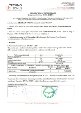 Vibroinsulation acoustic sealing compound Sonetic Acryl – is a monocomponent acrylic compound for sealing joints and seals in framed and non-framed constructions as walls, sealings, partition walls. The compound is used for lowing vibration rate transferred trough firm elements in sound insulation systems, exceeds sound insulation of the construction.