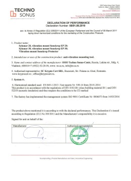 Sonokrep EP 20 is a professional anti-vibration mounting system used in sound insulation framed structures of walls and ceilings for the sound-insulating system efficiency improvement. The profile system is fixed on a straight perforated hanger, which is placed between two anti-vibration pads made from special elastomeric material and has no rigid connection with the metal framework of the mounting, thereby high anti-vibration performance is achieved. The material used as a vibration insulating element is Vibrafoam (Germany) having better vibration absorption performance as compared to the rubber insulating pads.
